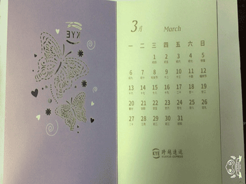 跨越速運017年台曆激光(guāng)雕(diāo)花